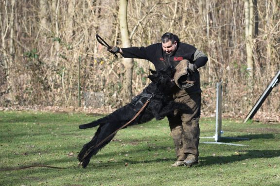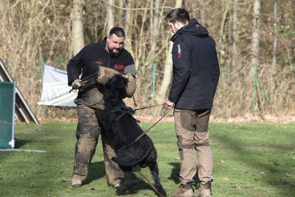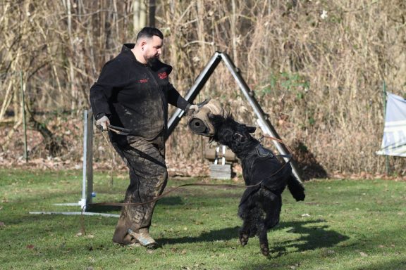 Schutzdienst ist ein kontrollierter Teil des Hundesports, bei dem der Hund unter klaren Regeln einen Helfer stellt, verbellt und auf Kommando festhält. Dabei stehen Gehorsam, Kontrolle und Zusammenarbeit im Vordergrund – nicht Aggression.